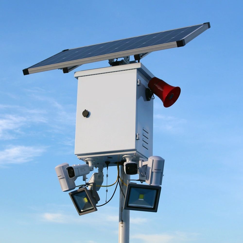 - 2 outdoor PIR motion detectors that activate alarm sound and light in response to nearby activity.